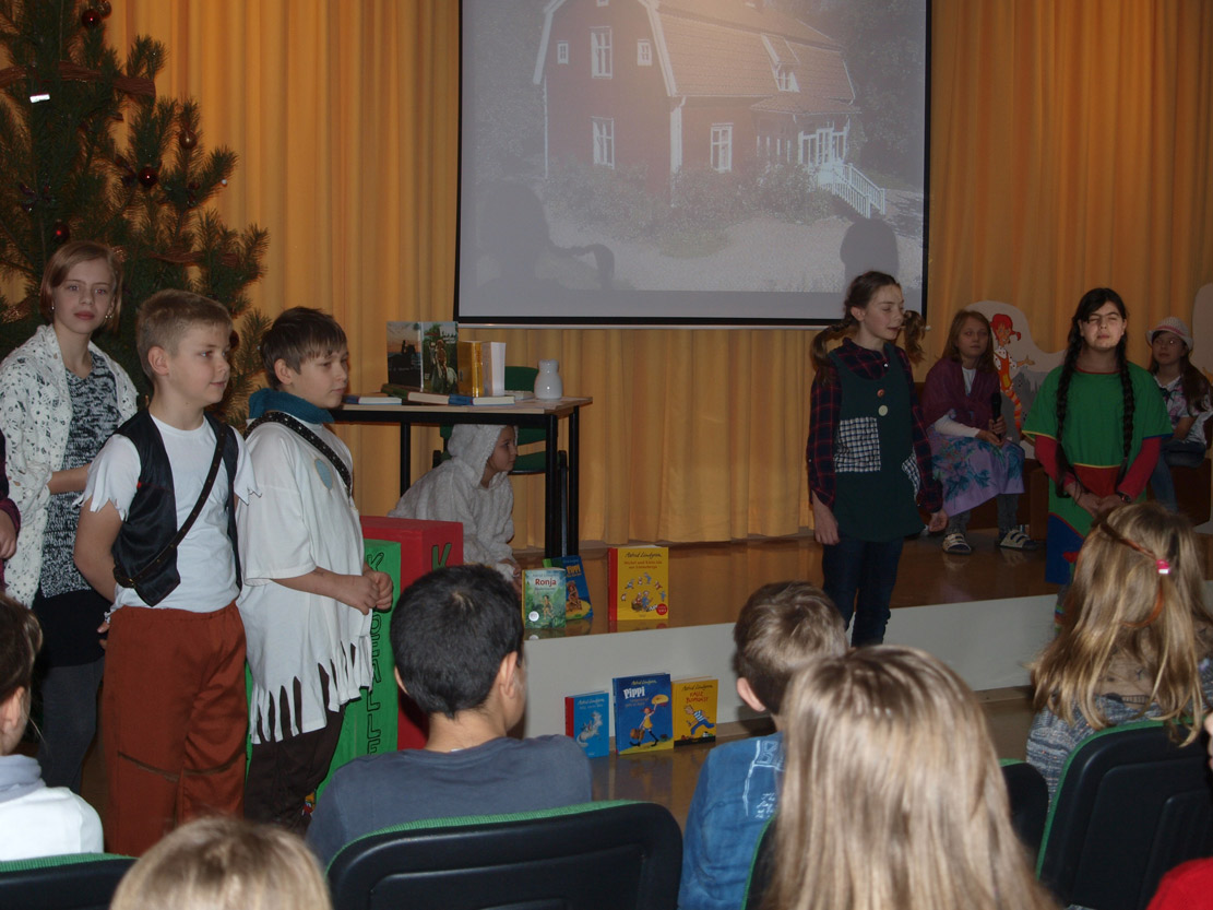 Einen würdigen Höhepunkt stellte in diesem Jahr die Aufführung eines Theaterstückes durch die Klasse 5 a dar. Viele Figuren der Kinderbücher von Astrid Lindgren wurden lebendig und stellten sich vor. Dies bereitete den Akteuren der 5 a, aber auch den Zuschauern viel Freude.